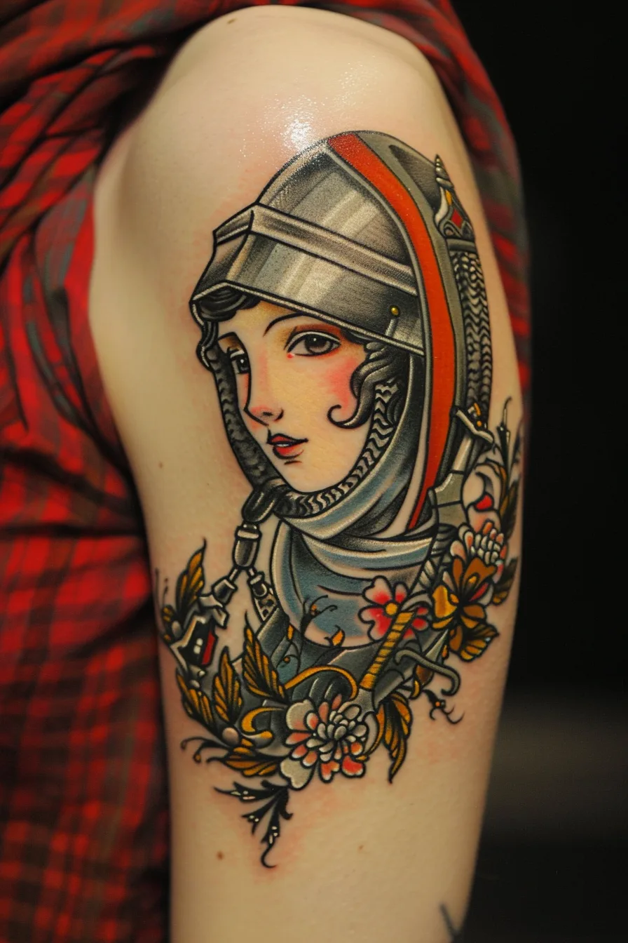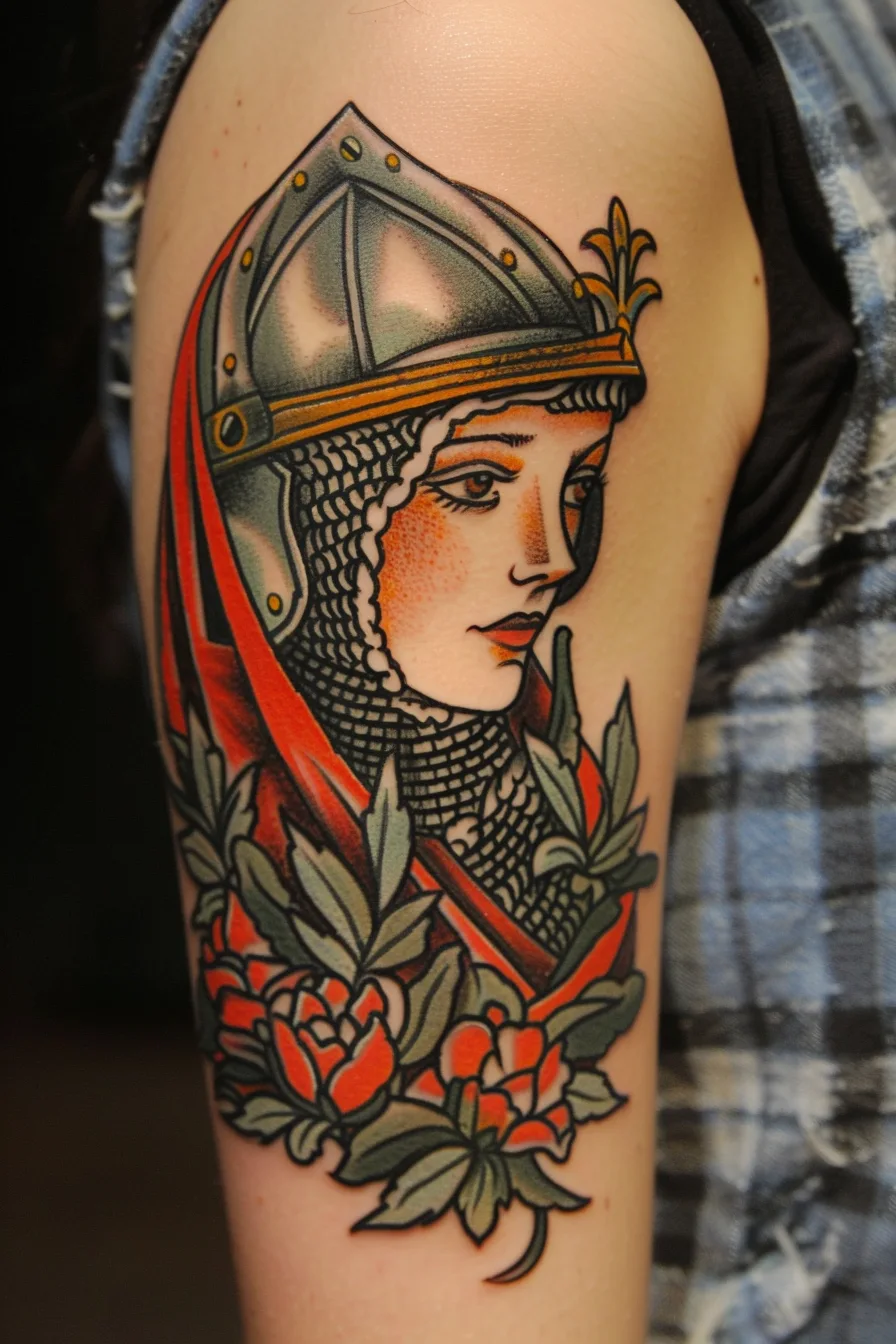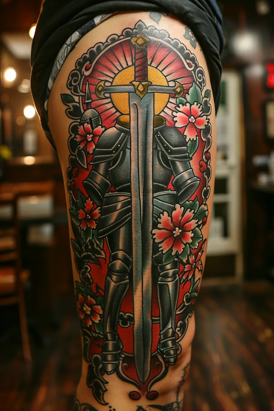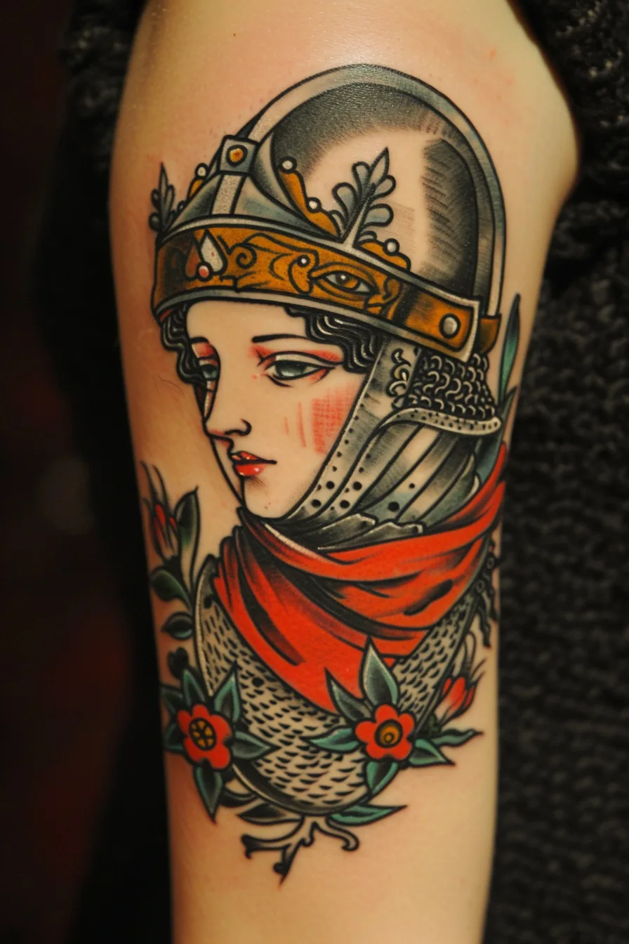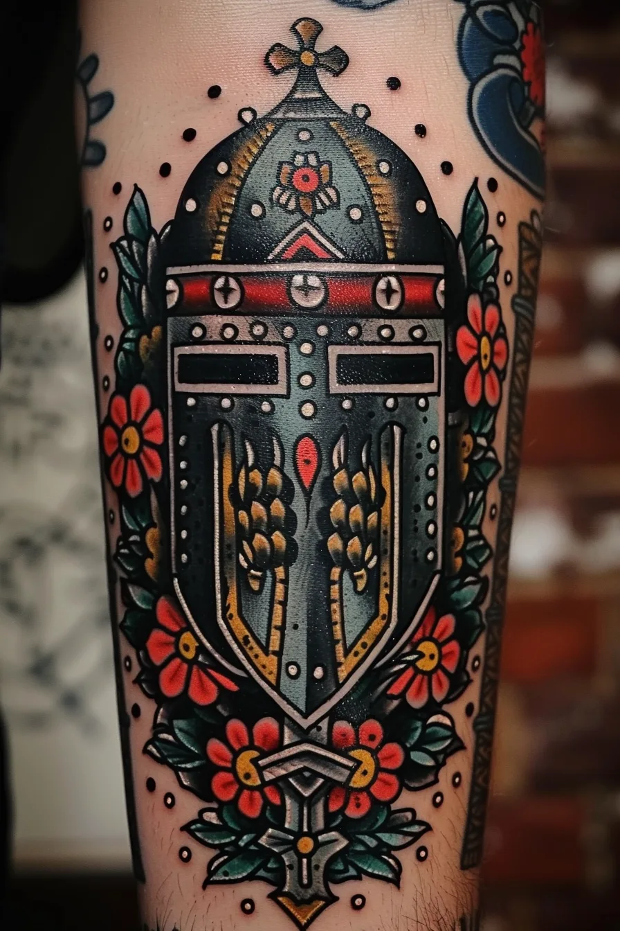 Whether you're considering a full-sleeve battle scene or a simple helmet silhouette, there's a knight tattoo to suit your style.