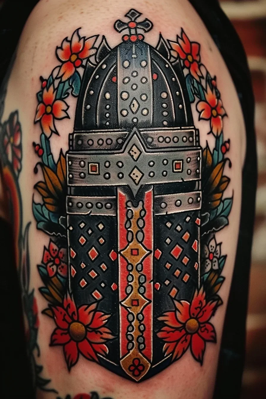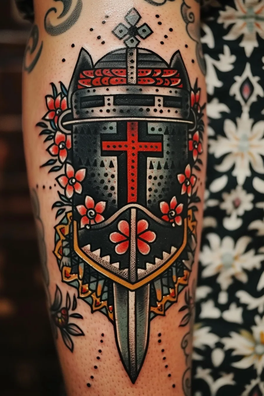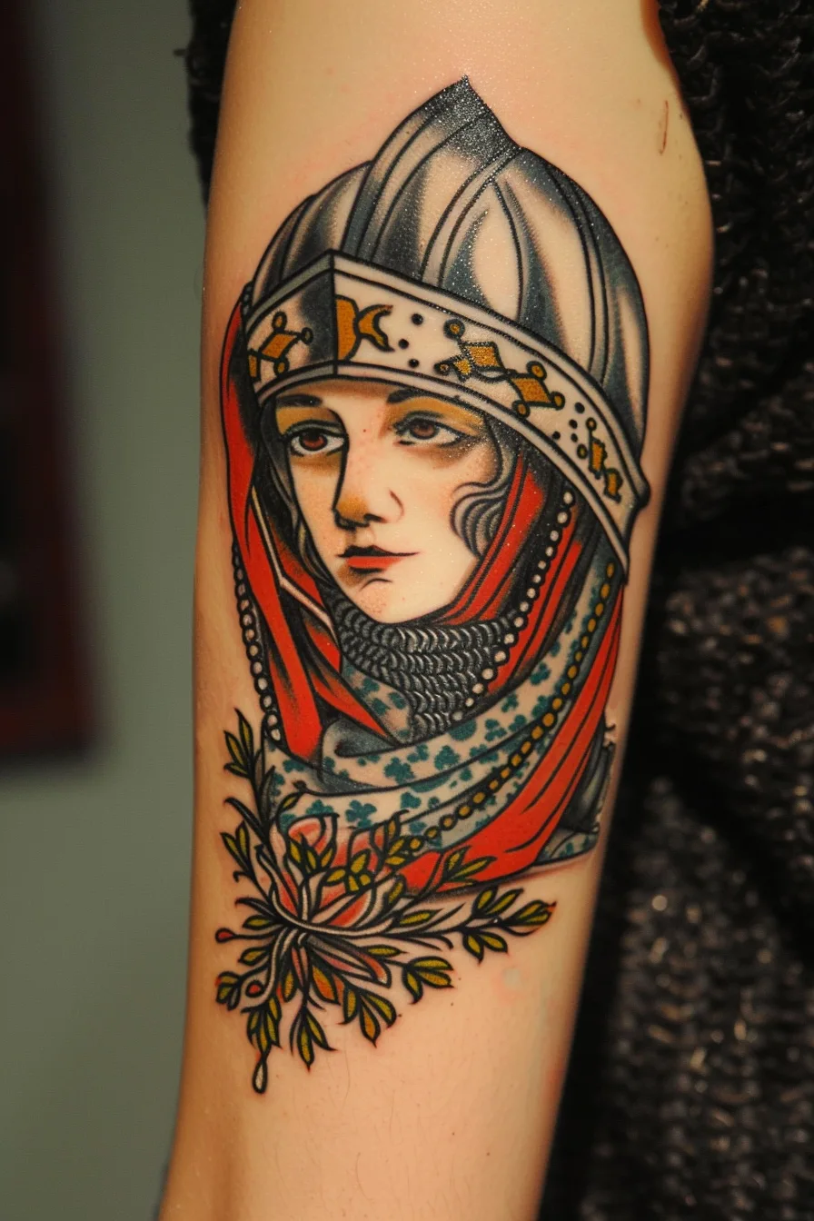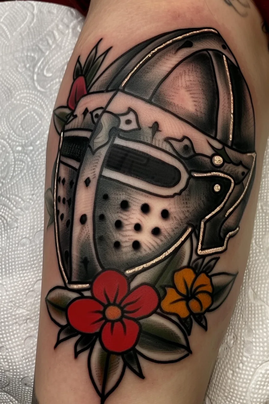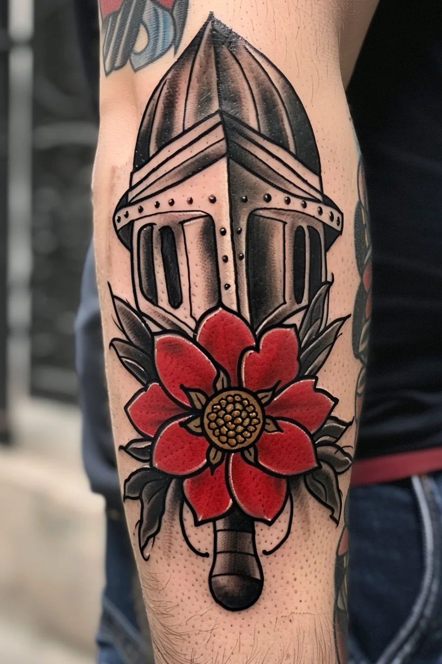 Whether you're considering a full-sleeve battle scene or a simple helmet silhouette, there's a knight tattoo to suit your style.