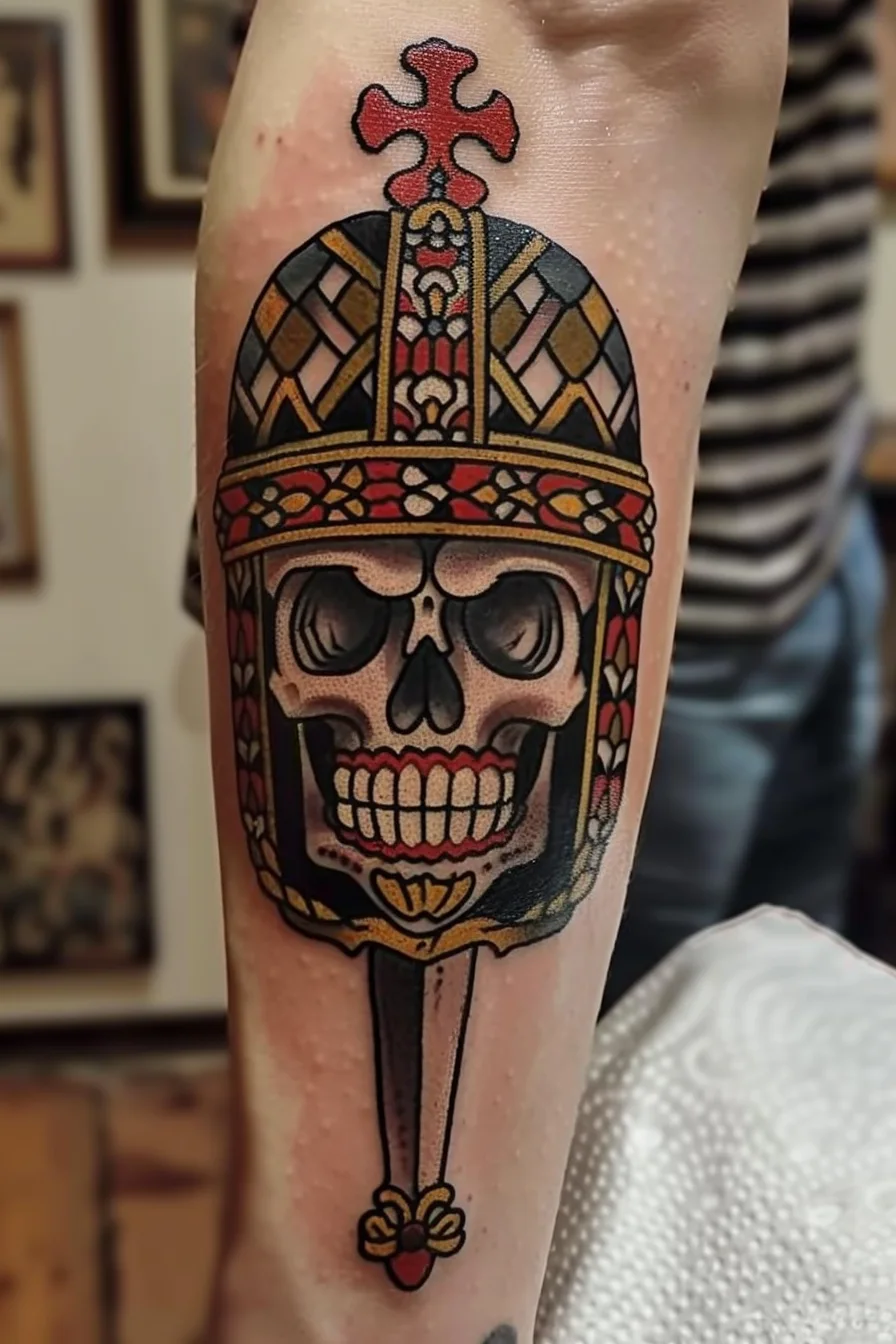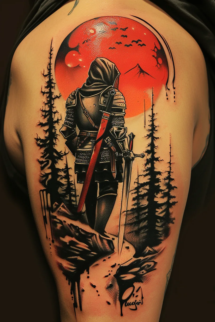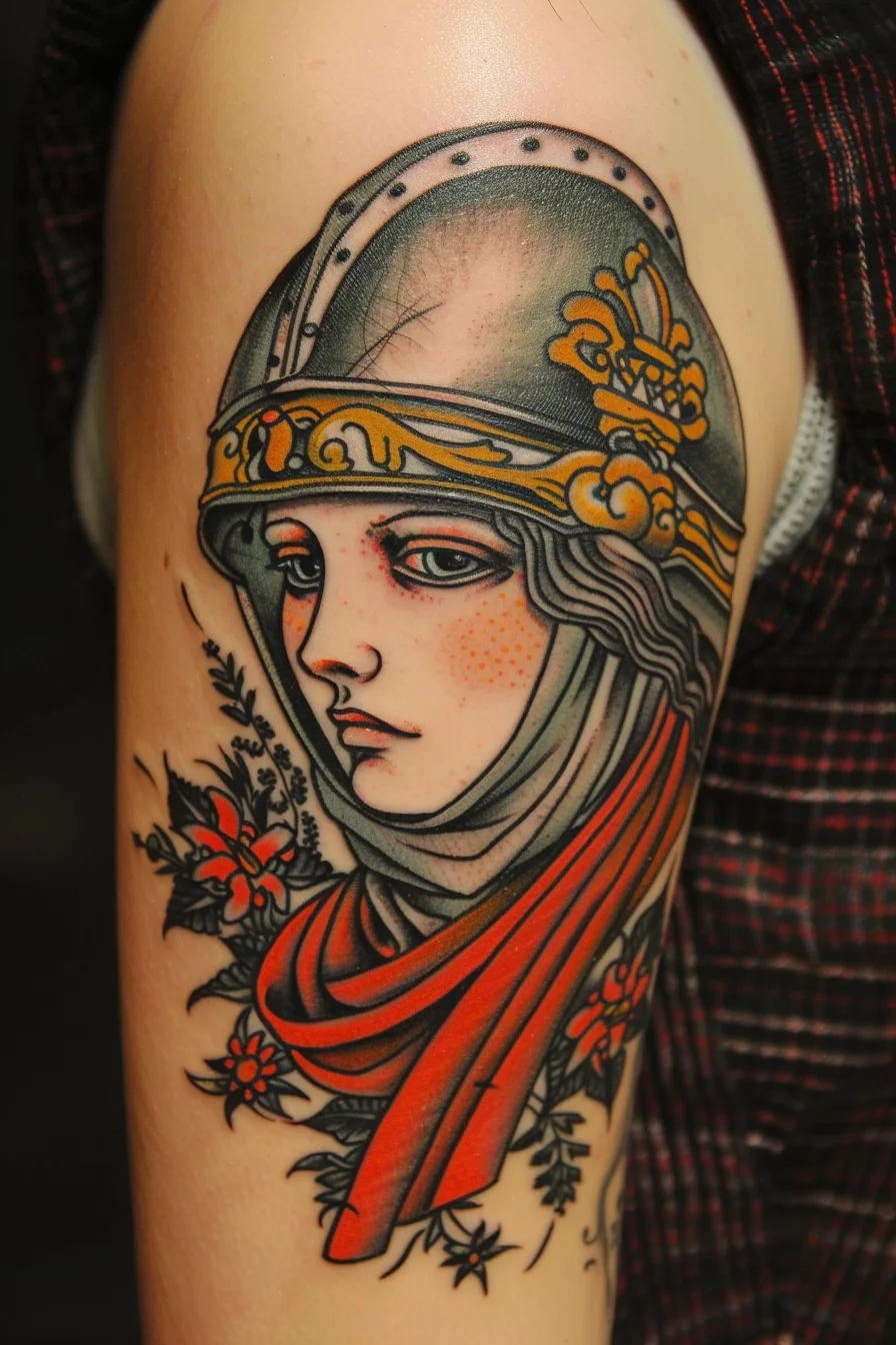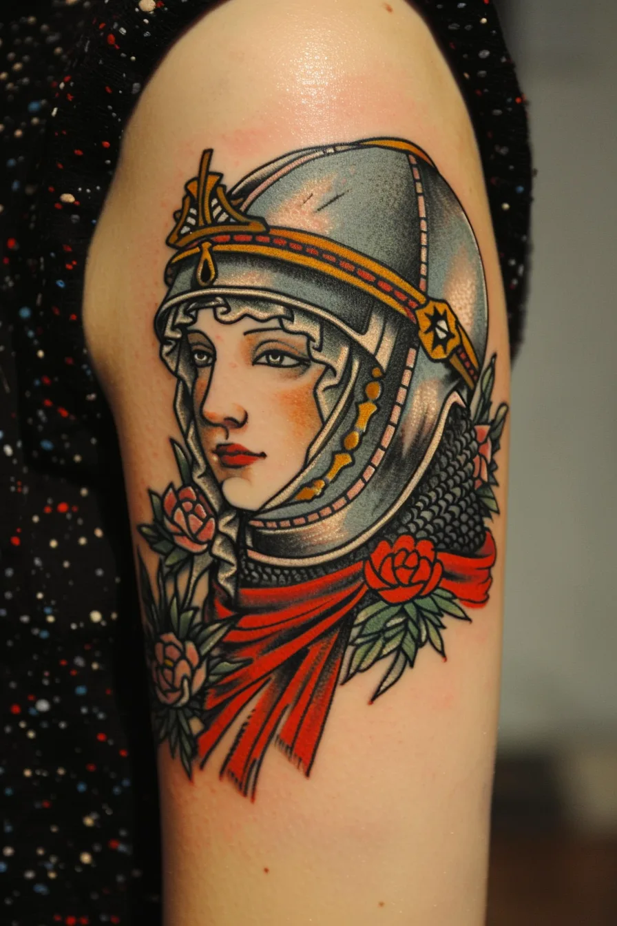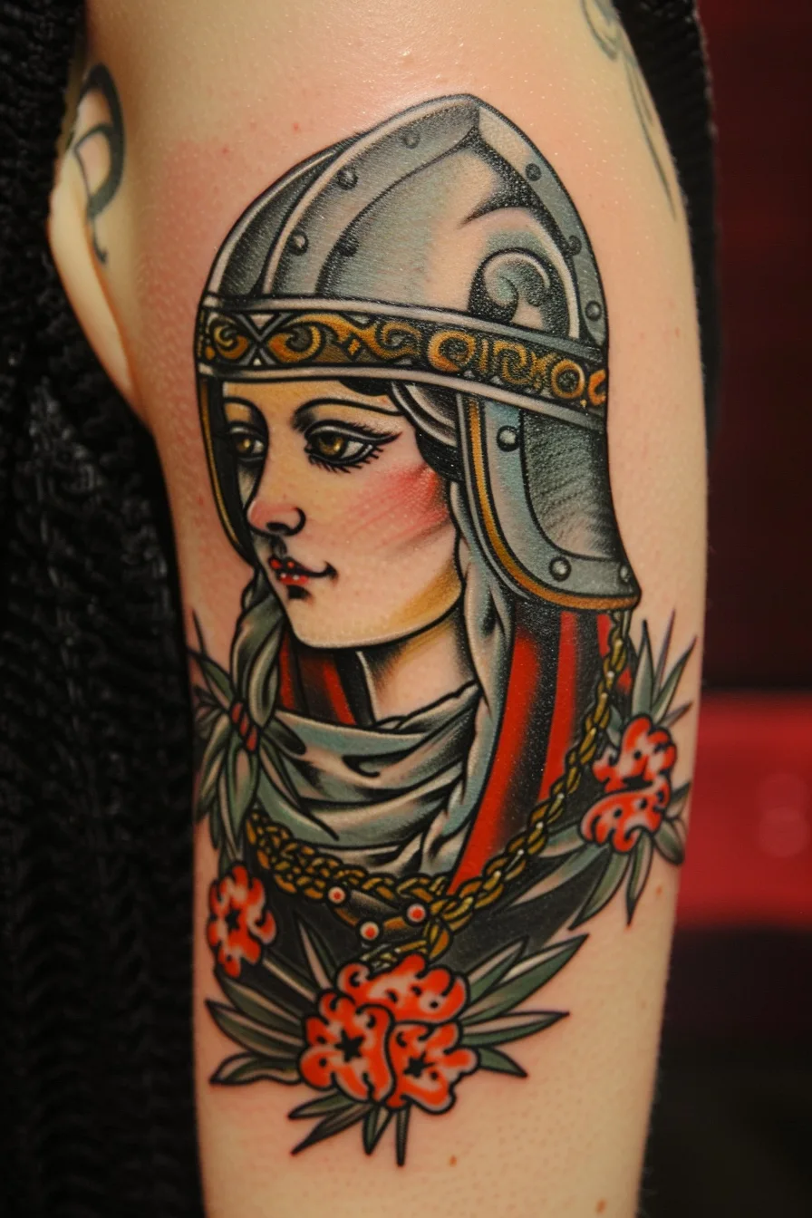 Whether you're considering a full-sleeve battle scene or a simple helmet silhouette, there's a knight tattoo to suit your style.