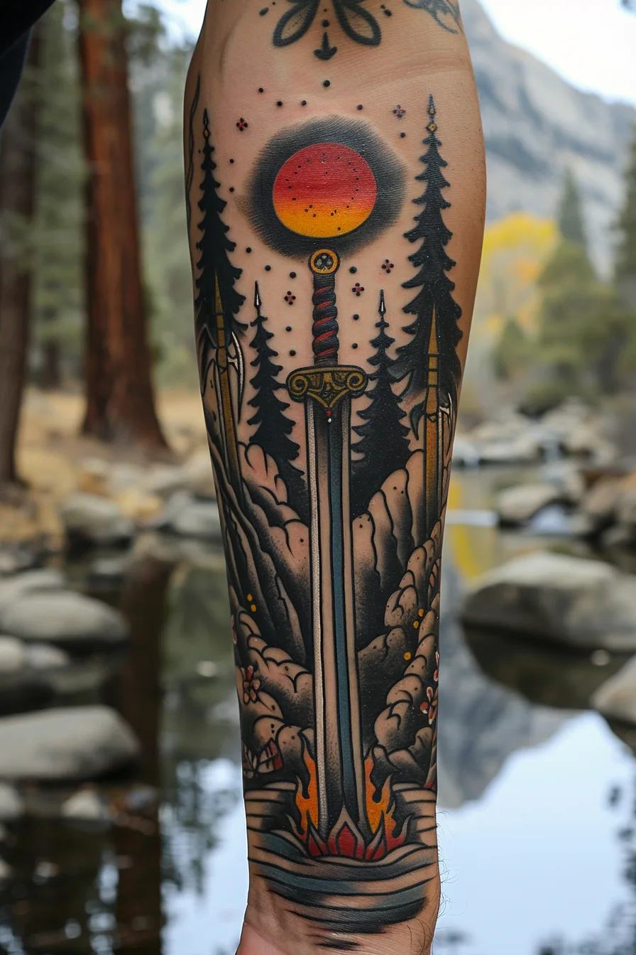 When it comes to sizing, you've got options. A full sleeve from wrist to elbow can accommodate an epic battle scene or a larger-than-life knight in full regalia.