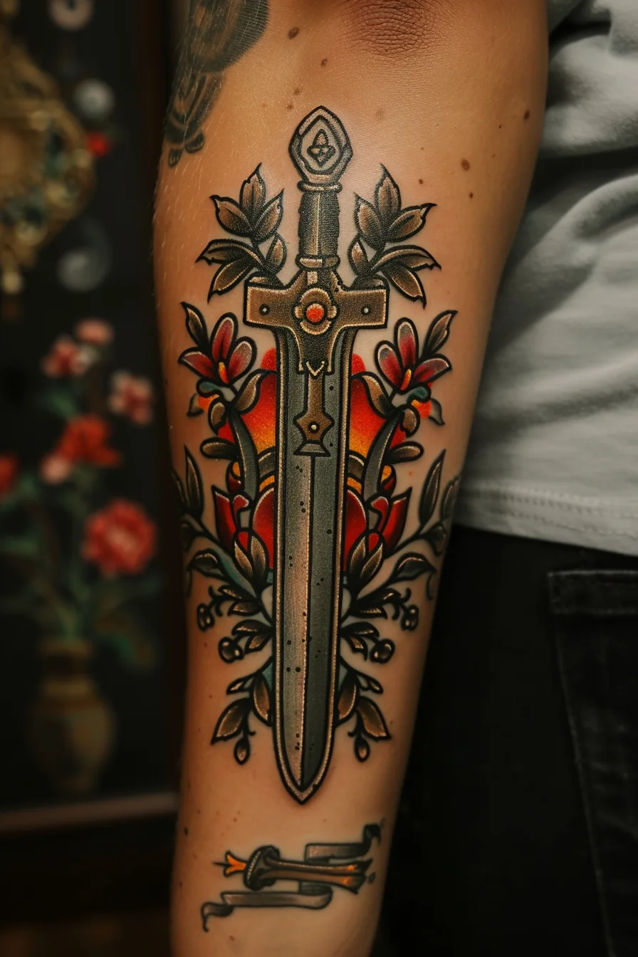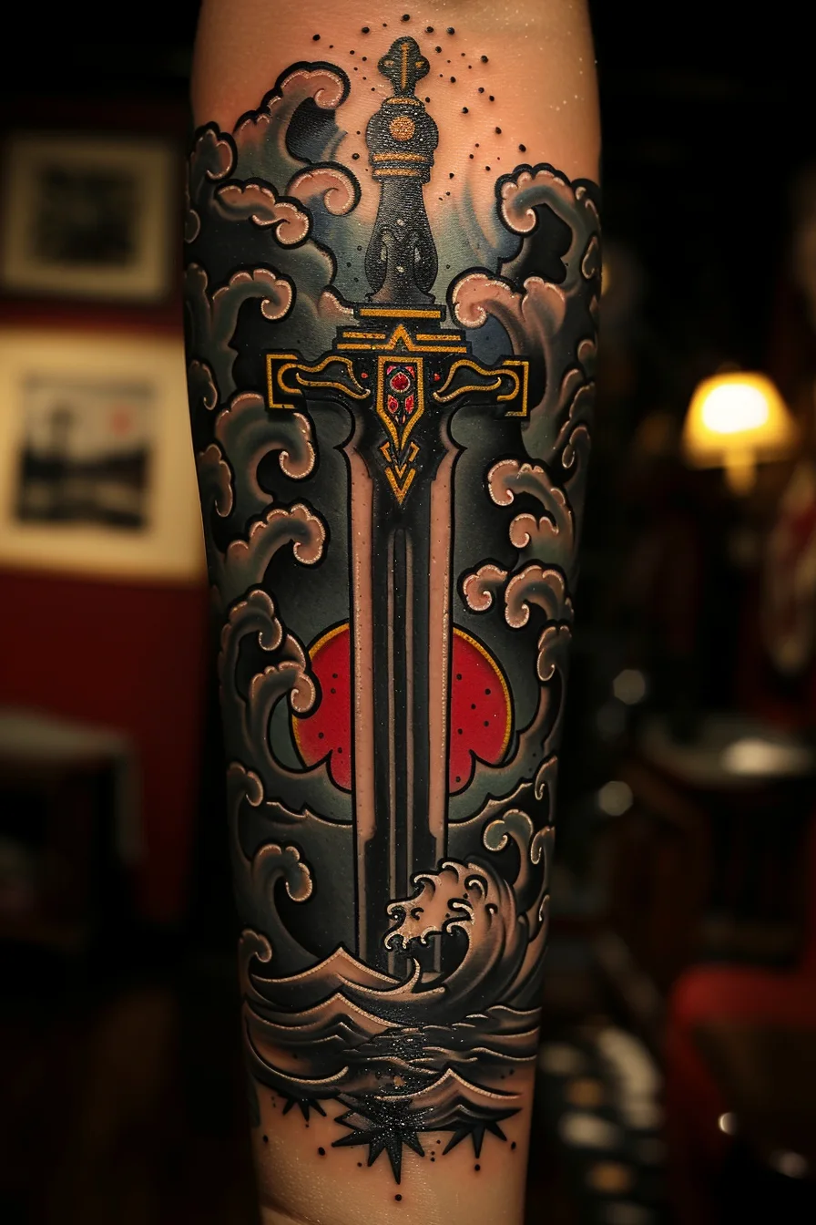 Size-wise, you've got options. Go big with a full-bicep piece that'll have people asking if you're secretly related to King Arthur, or keep it more subtle with a smaller design that peeks out from under your t-shirt sleeve. Just remember, unlike your high school gym buddy's protein shake obsession, this knight isn't going anywhere. So choose a size you're comfortable rocking for the long haul. Trust me, your future self will thank you for not going overboard!