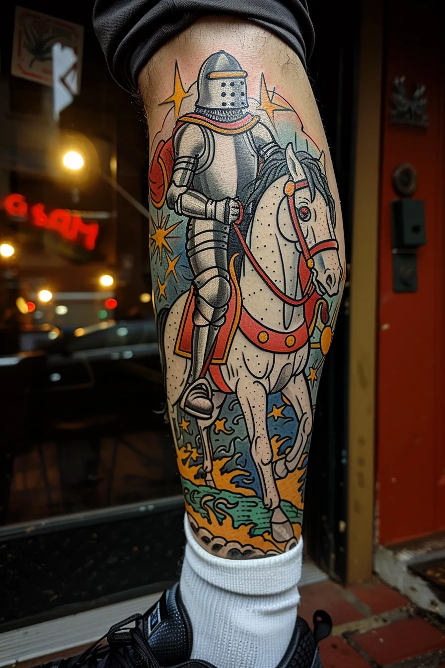When it comes to placement, the outer calf is prime real estate for your knightly ink. It's a relatively flat surface that can accommodate intricate designs without too much distortion. Plus, it's not as painful as some other spots – because let's face it, we're not all as brave as those medieval warriors we're idolizing.